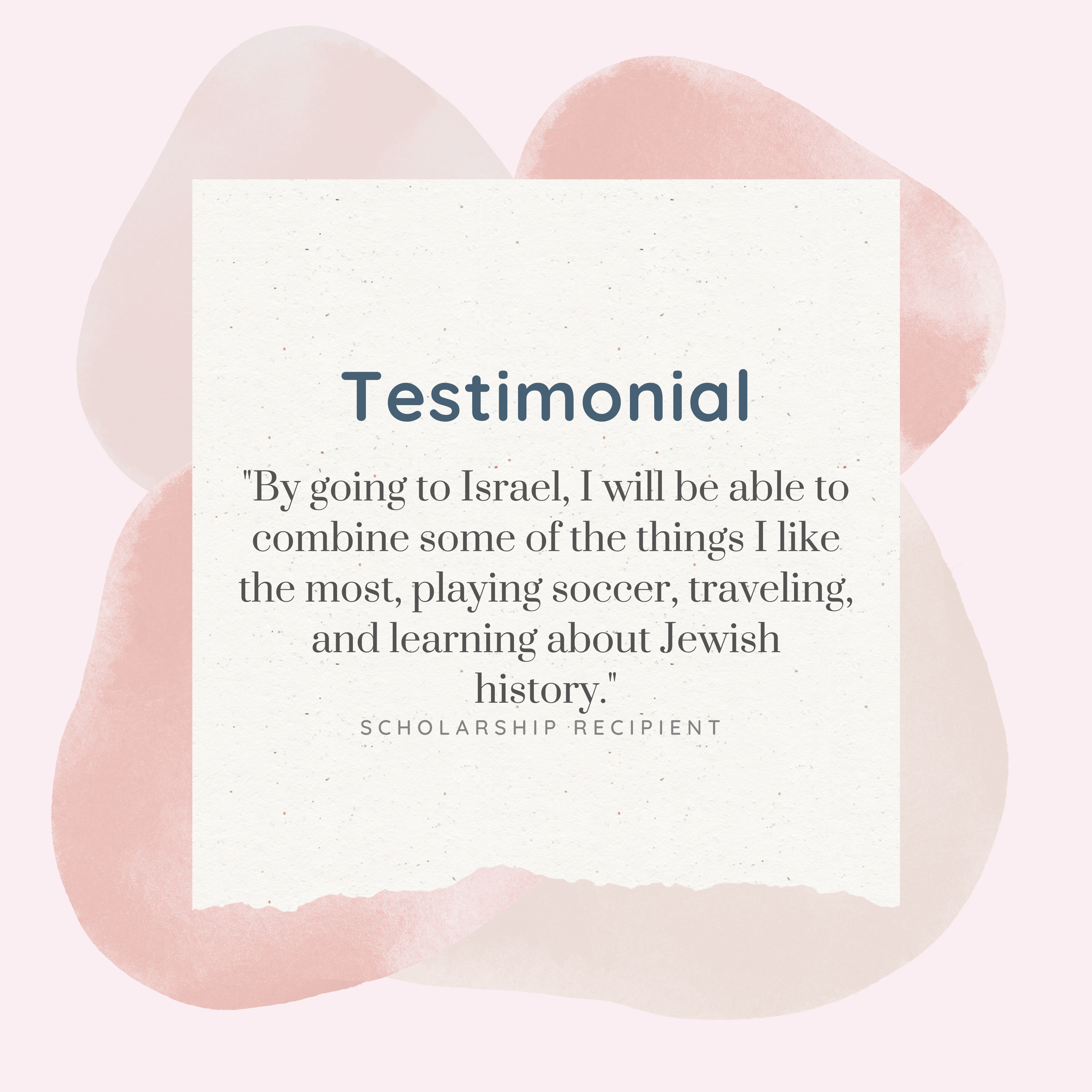 What do our applicants and recipients have to say about their experiences and opportunities made possible by the Susan Murray Youth Scholarship Fund? These teens are grateful for the monetary assistance given by scholarship dollars. It allows them to be active in their communities with other Jewish teens, both locally, nationally and even internationally. From local summer camp opportunities, to lobbying on Capitol Hill, to a semester in Israel and the International Maccabi Youth Games, the scholarship funds help make these experiences possible for teens in our community.